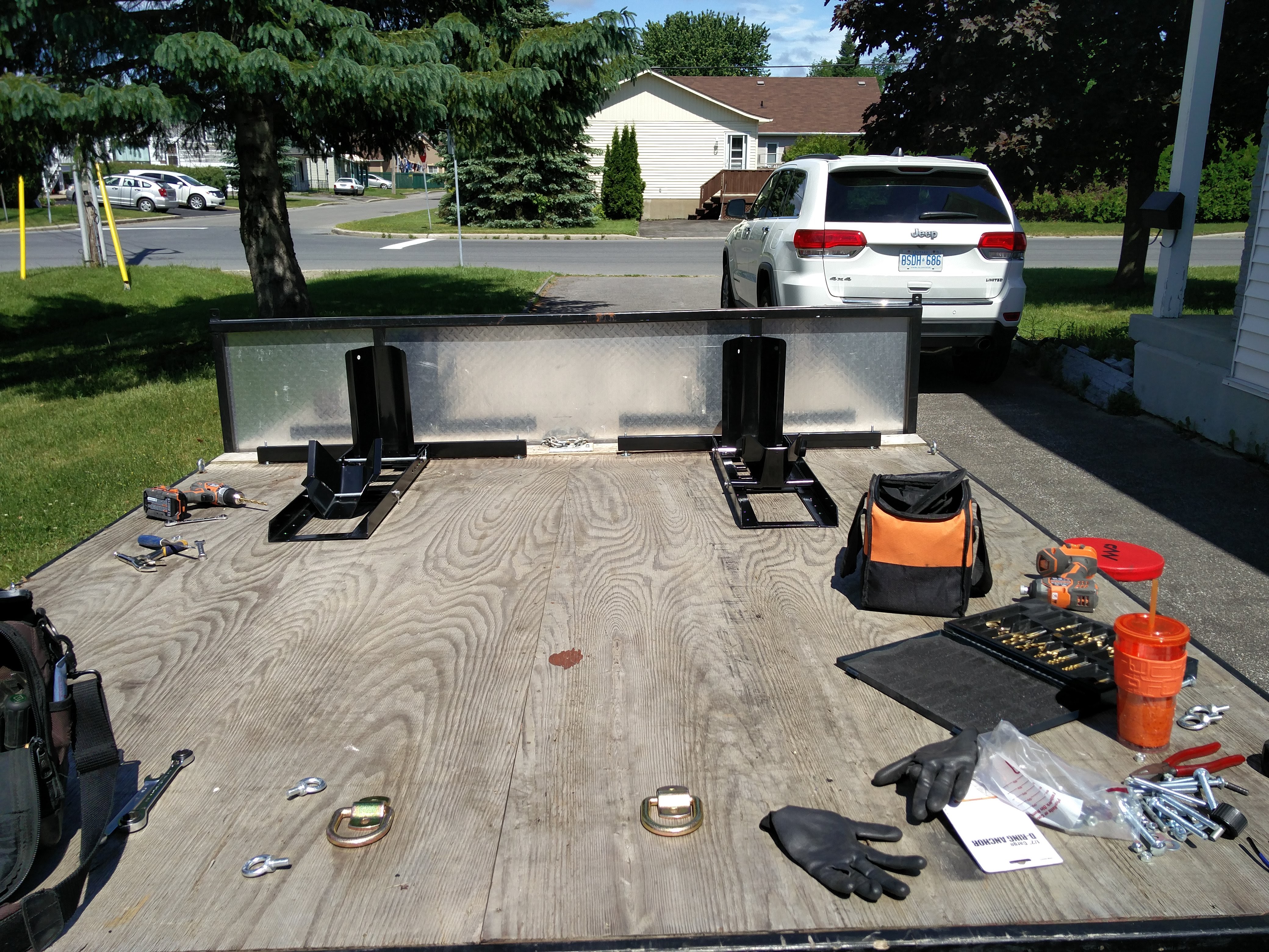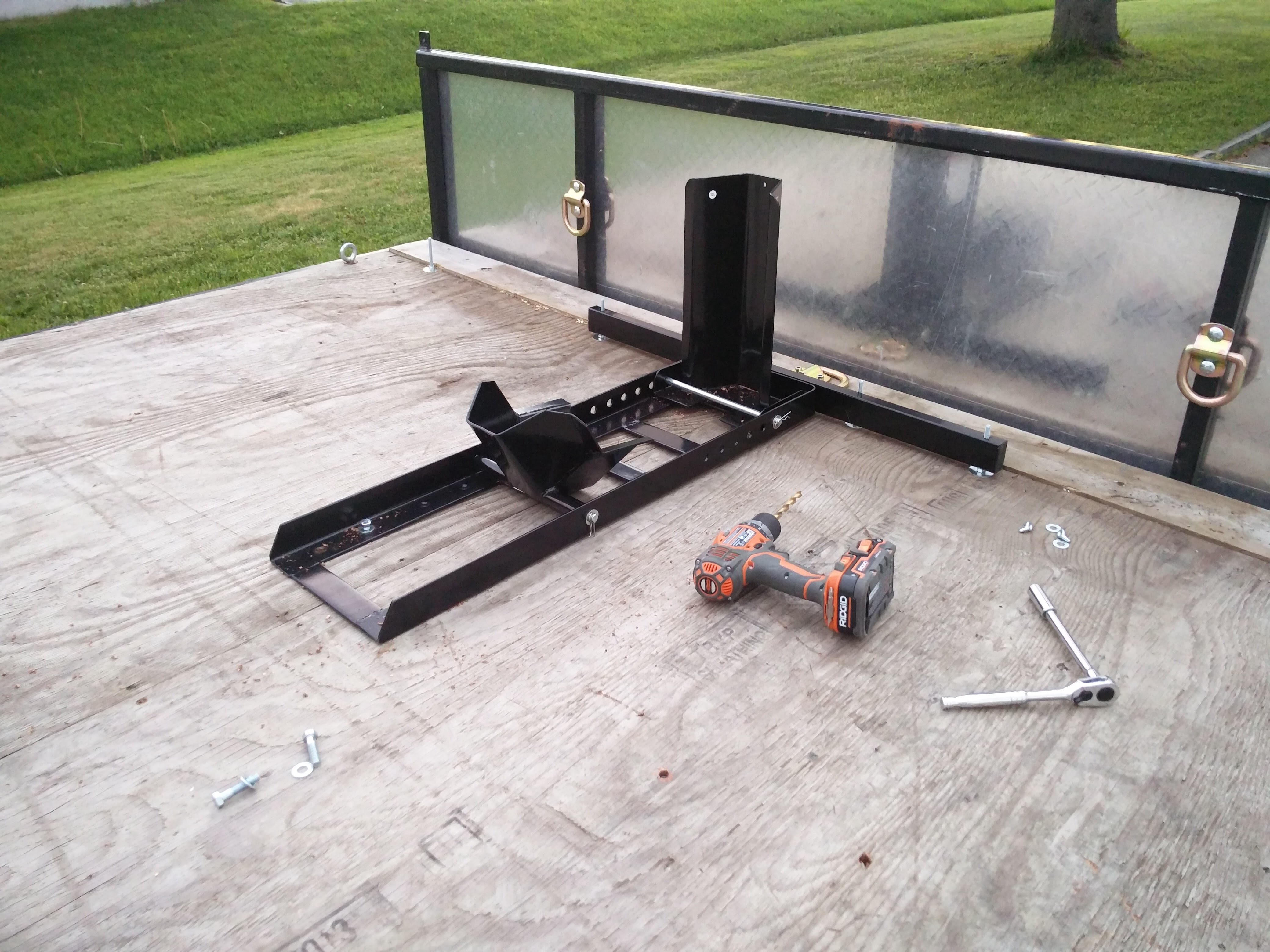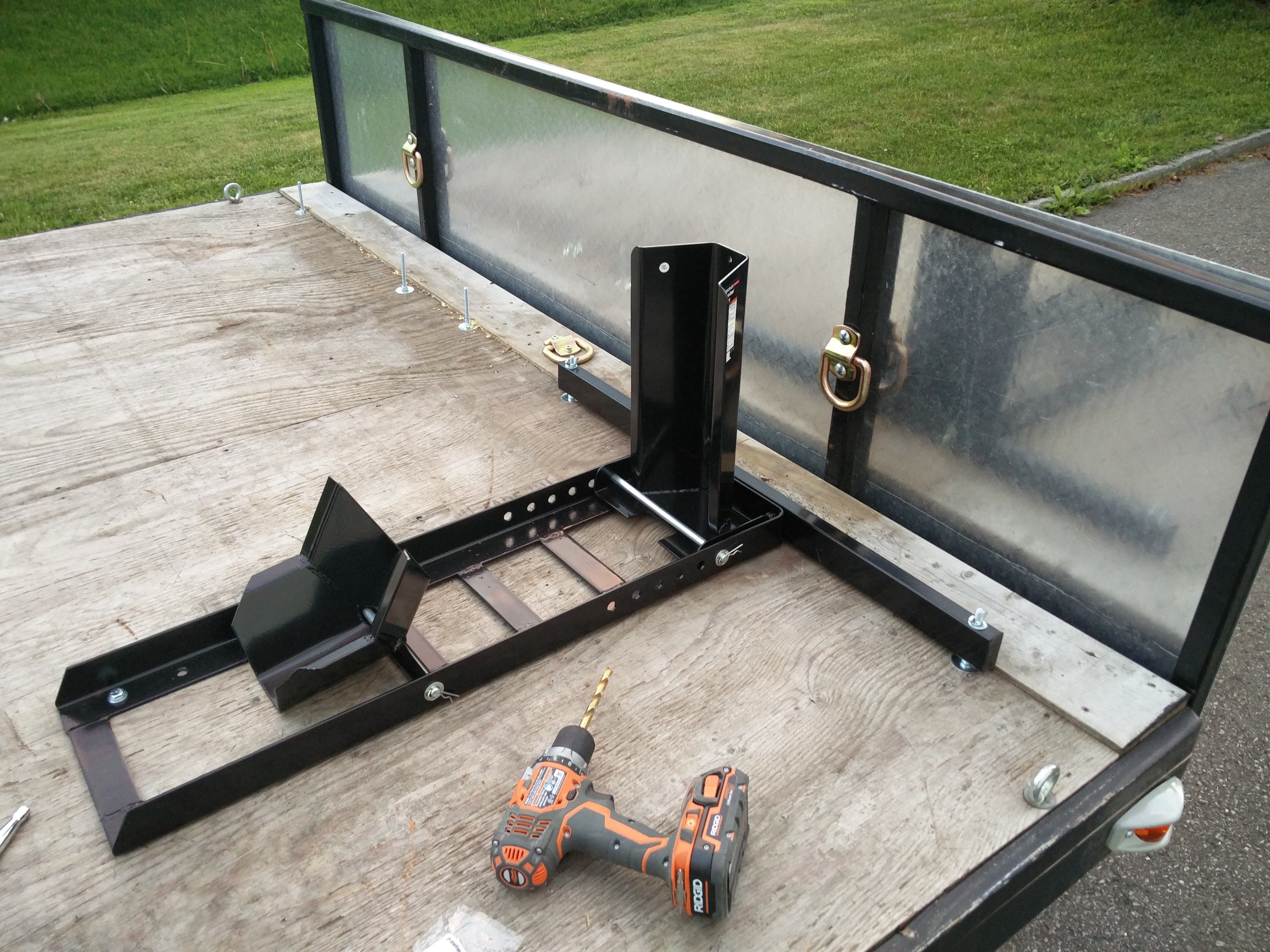 JoWhee Posted June 15, 2016 Posted June 15, 2016 (edited) So being a cheap bastard, I picked up an 8'x8' trailer. It was previously used to transport two snowmobiles. I've redone all the wiring and lights, and picked up two wheel chocks from Harbor Freight. I've run carriage bolts up through the floor and frame and I'll be using wing nuts to keep the front in place, I drilled out the threads on the chocks, to make installation & removal easier. At the back I'm using a clevis pin and a bolt with a bite in nut, I have no idea what they're really called. While measuring, I noticed that the two chocks aren't identical, the mounting holes at the rear are off between the two by about 1/8" , not enough of a difference for the pin, but enough that the bolt would go in cross threaded, so the two chocks aren't perfectly interchangeable, but it's no big deal. I may just use pins instead. As of now the trailer can be set up to transport one bike in the middle or two on either side. Not bad for a $500 trailer, $100 in chocks, and about $50 in hardware. PS Thanks to Ben, Mikey and Stefan for their help patience and advice. Edited June 15, 2016 by JoWhee 1 Quote
